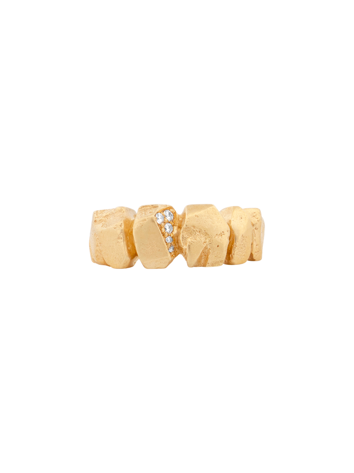 5 brilliant cut diamonds set in the facet of the chunky ring.