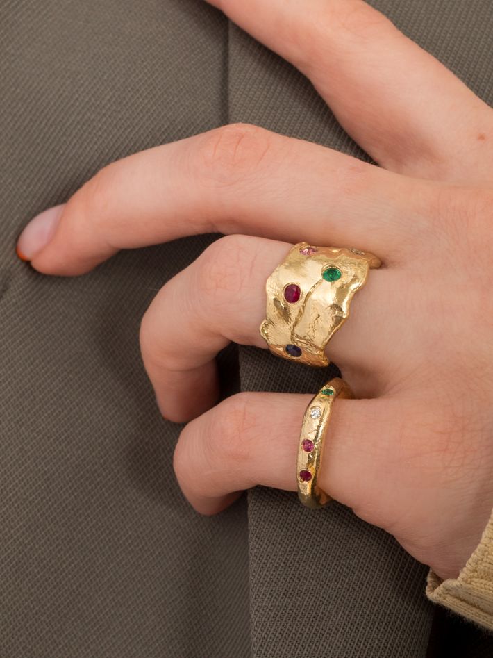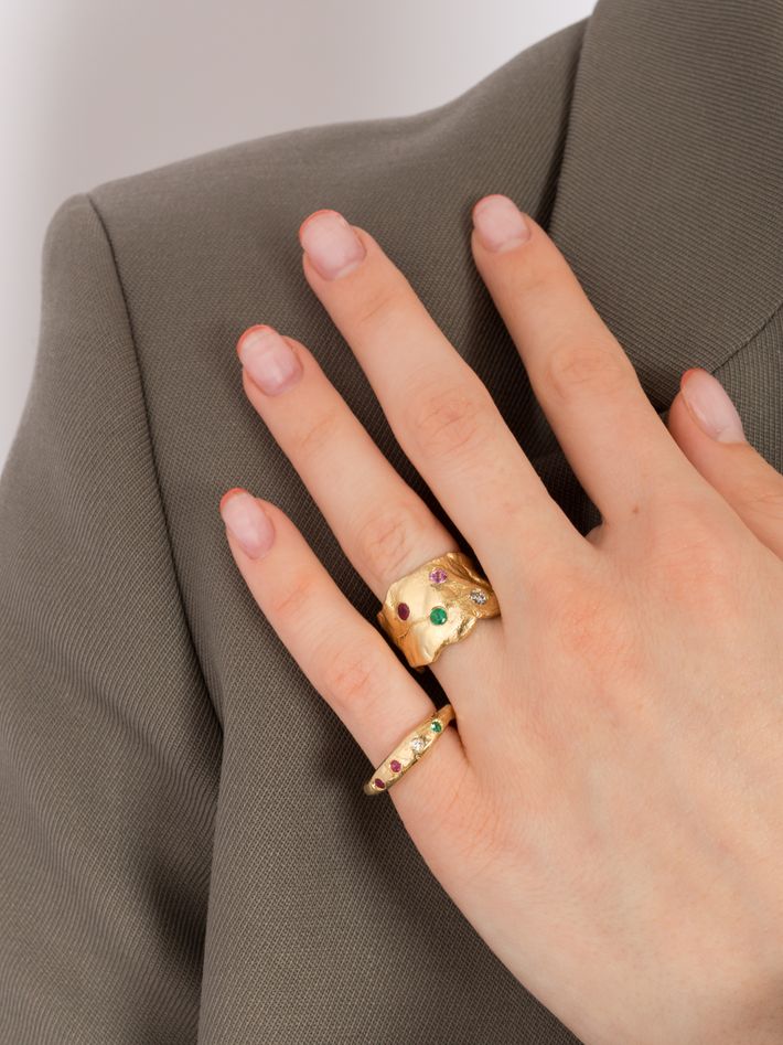 One of our favourite new pieces from Alice, this is a gorgeous band set with precious stones, a great way to wear colour.