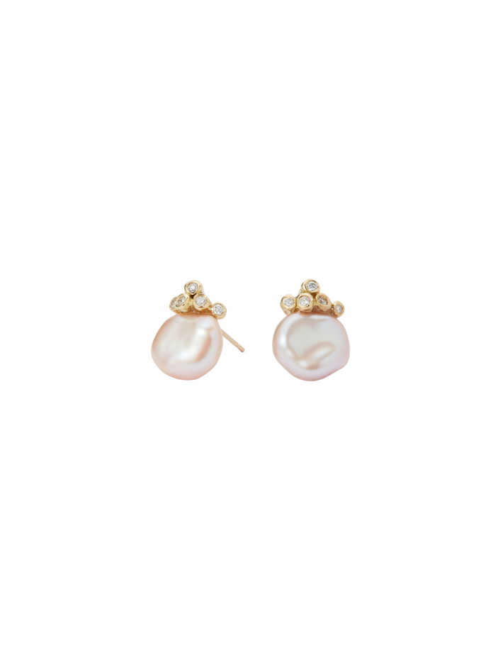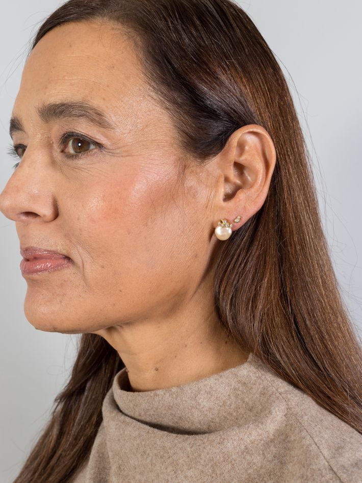 18 kt solid yellow gold2 pearls & 10 diamondsPair of earrings