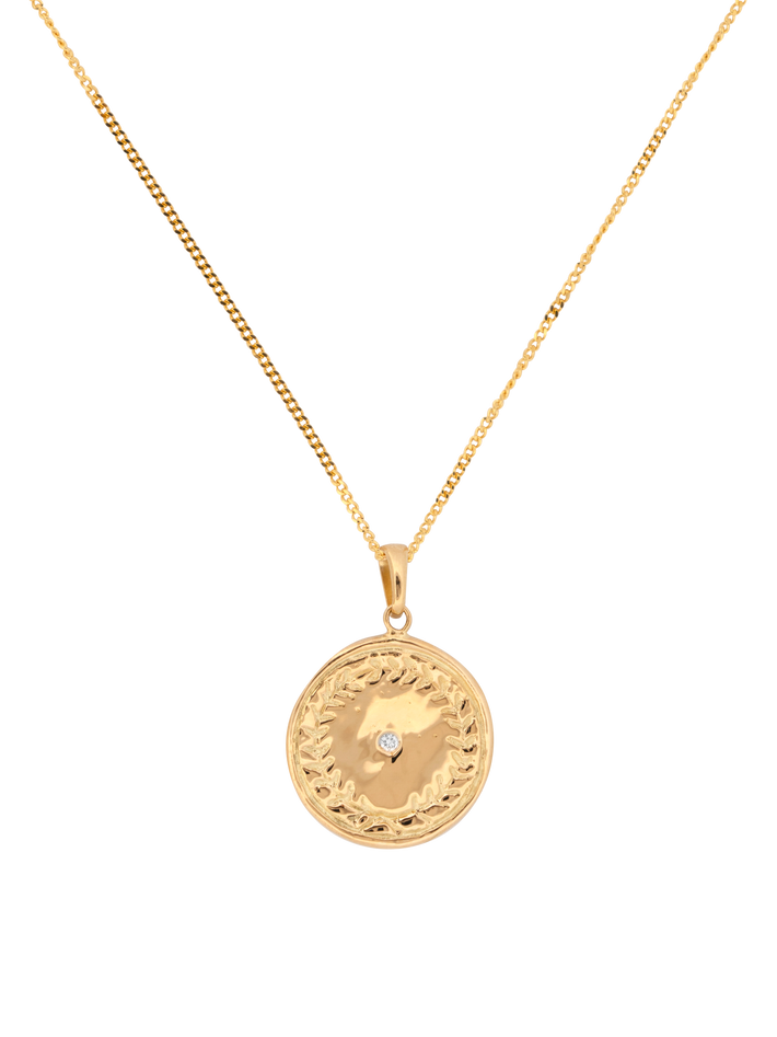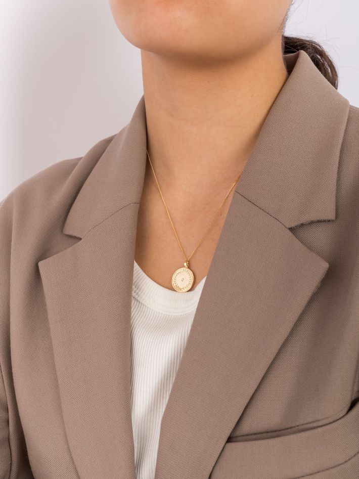 1.5mm round diamond deep set into the centre of the round pendant.