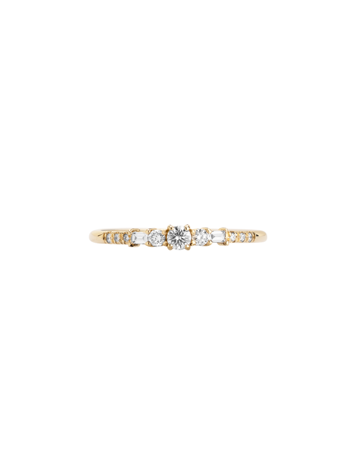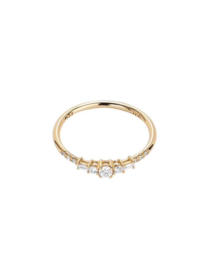 This piece is perfectly balanced and varied in dimension. Set with alternating diamond shapes.