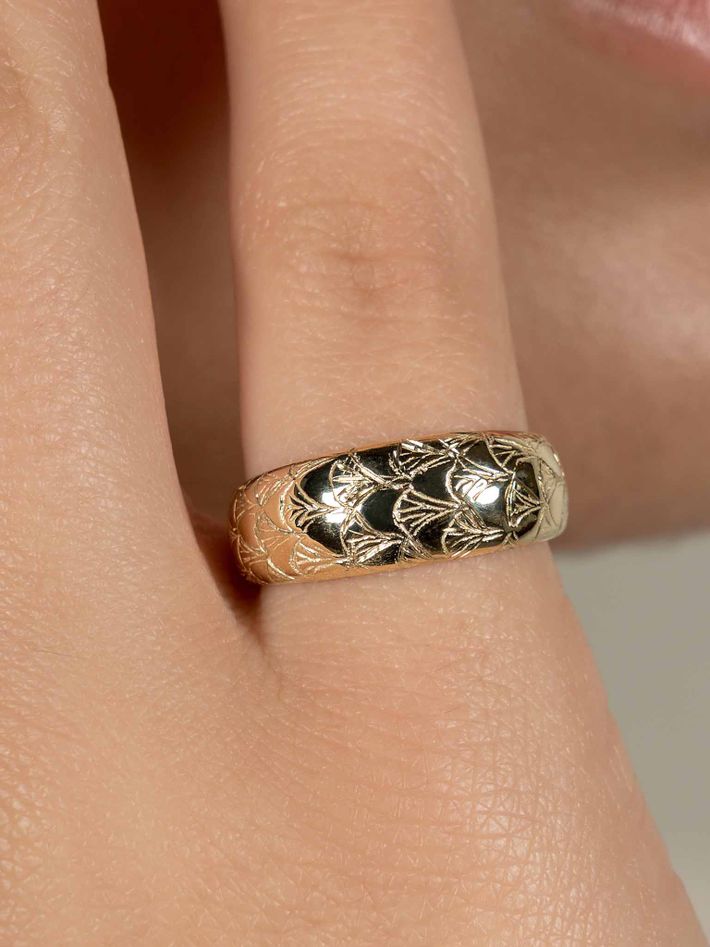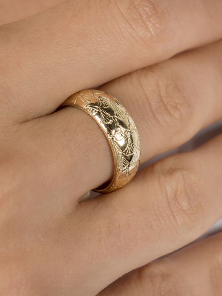 Made of a single, solid precious metal or metal alloy. Highly durable, can always be re-polished to regain its shine after wear.