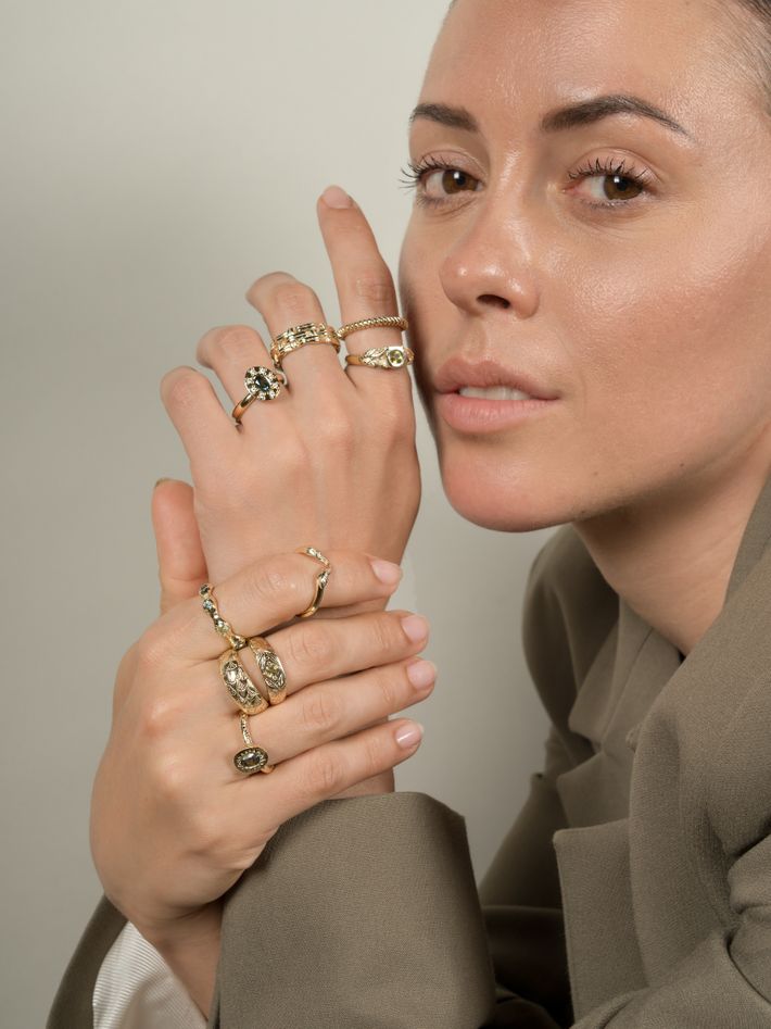 A precious and highly durable metal which comes in different golden hues depending on its purity.
