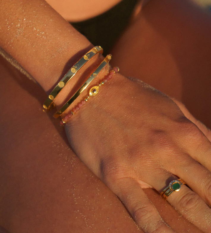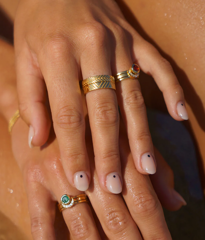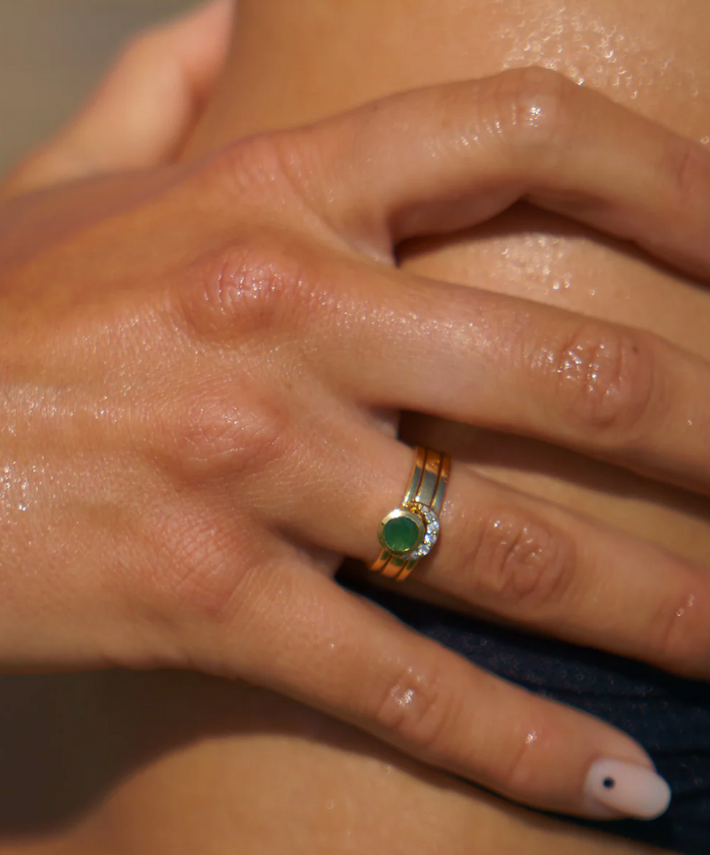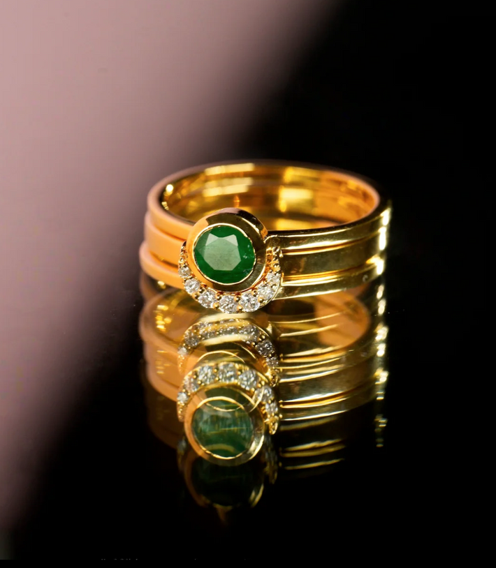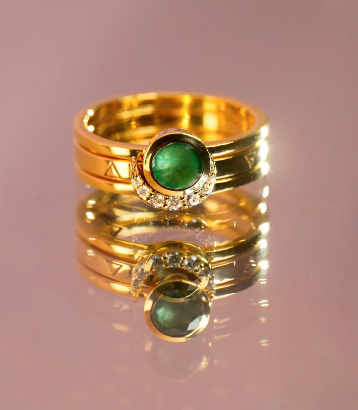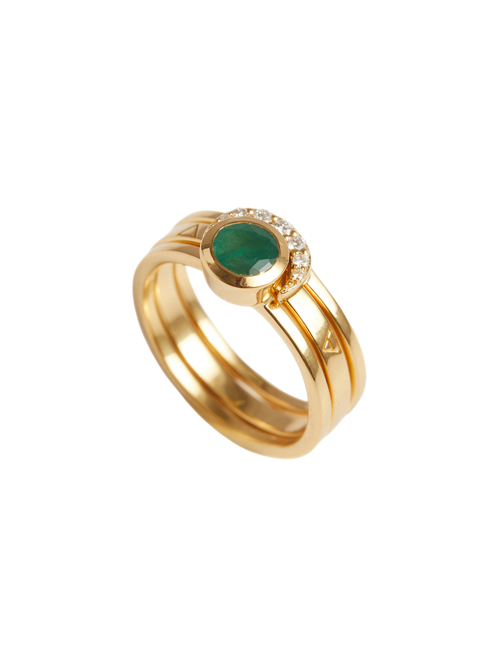 Eclipse fine stack emerald solid gold