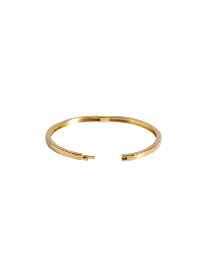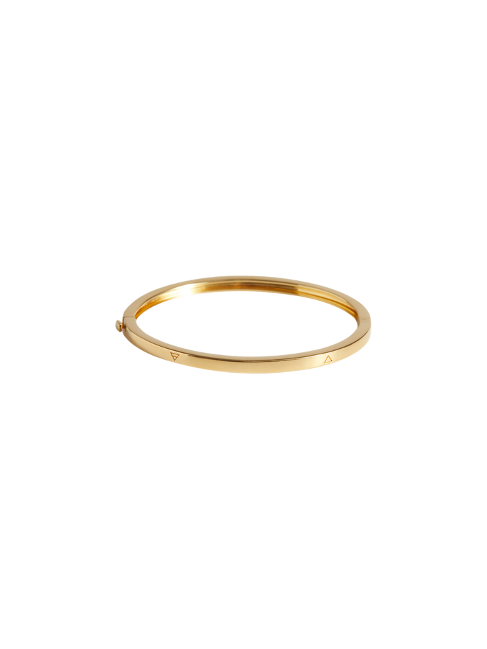 Made of plated 18 karat yellow gold, a thin layer of precious metal layered on the surface of a precious base metal. We recommend using our replating service every 3 or 4 years.