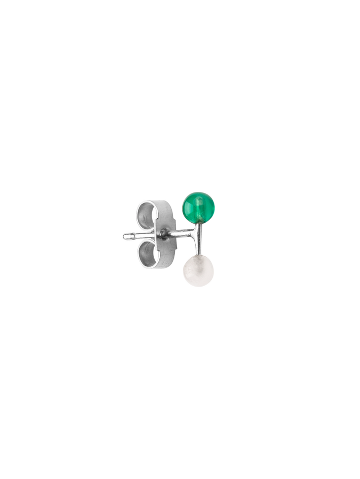 Green agate & moonstone barbell stud earring