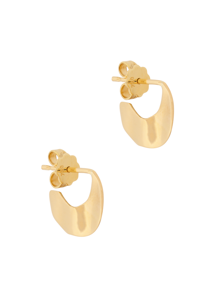 A thin leaf of gold, these earrings are lightweight and catch the eye when you wear them.