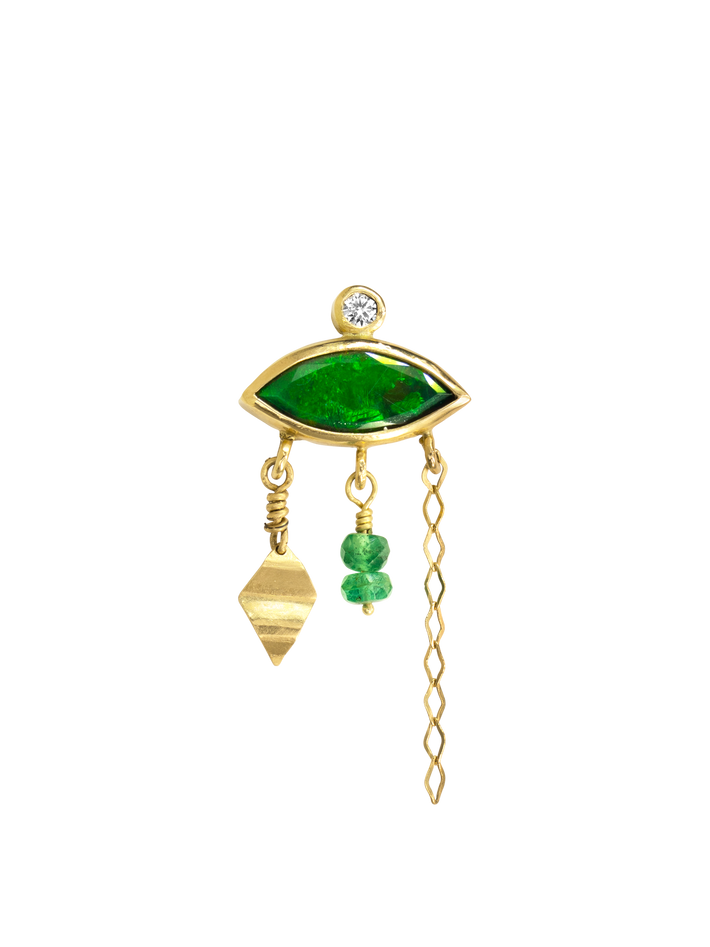Holiday green opal, diamond and emerald earring