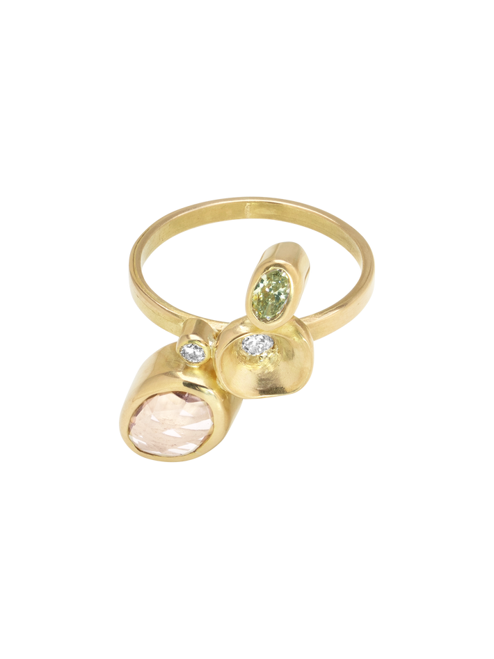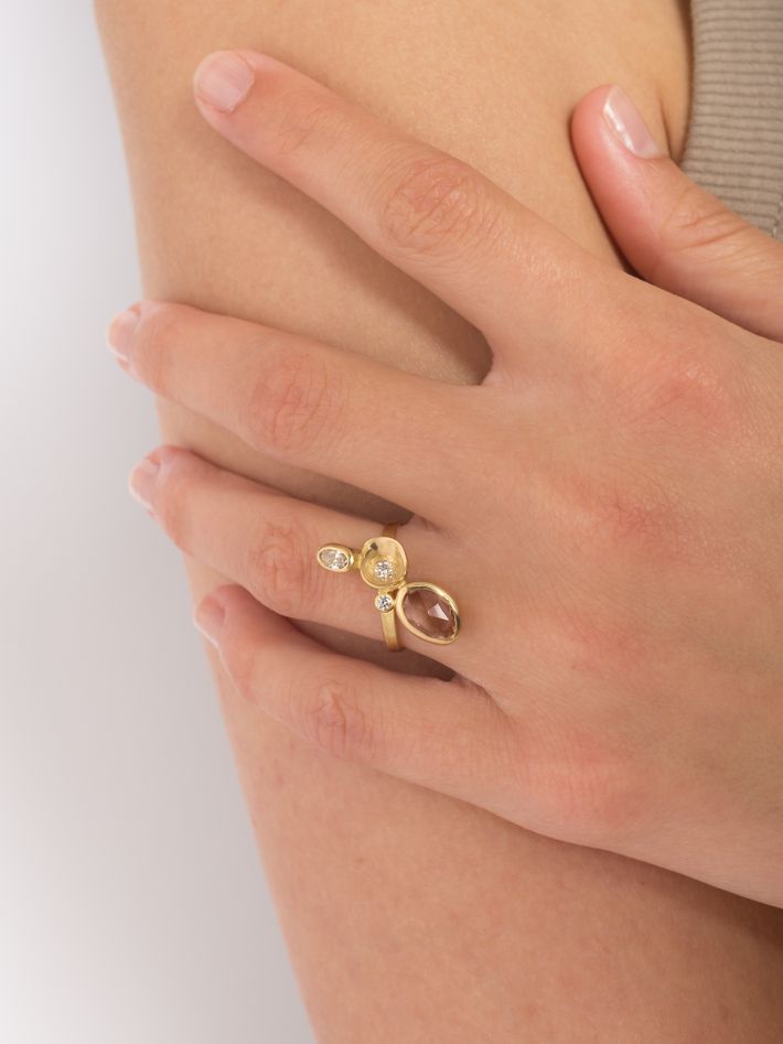 A one of a kind statement piece with a unique pink tourmaline. A special heriloom piece for your jewellery collection.