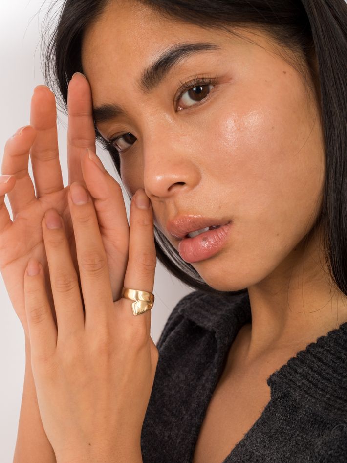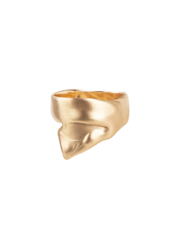 This sculpted ring showcases the organic and unusual texture of molten gold, with each piece made by hand.