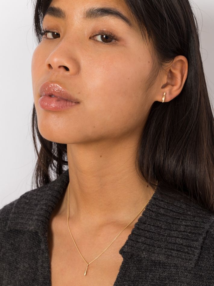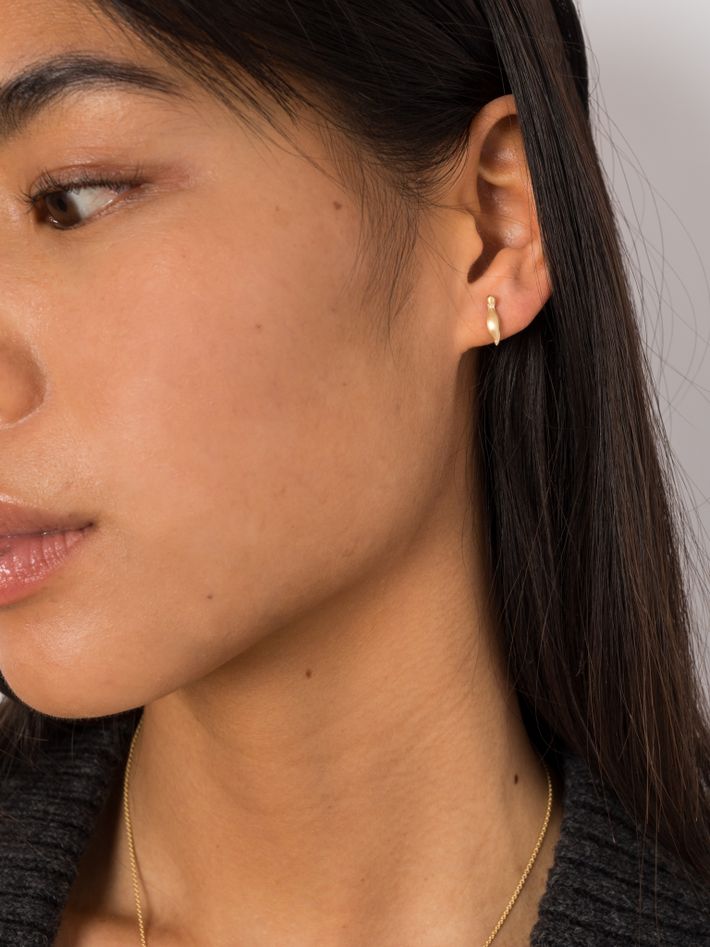 A sculpted stud earring that can be worn at different angles and looks great stacked with the hoops in this collection.