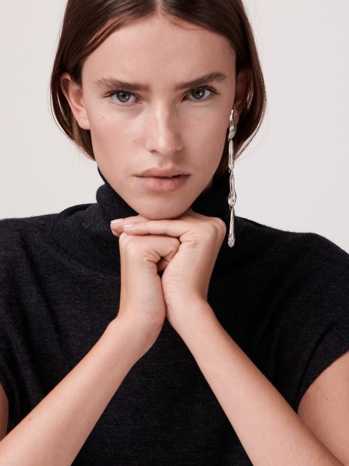 Selected solely from Leigh’s sterling silver collection, this edit highlights her passion of natural forms and textures. Ranging from sculptural earrings to fluid pendants, these are striking designs that resemble works of art.