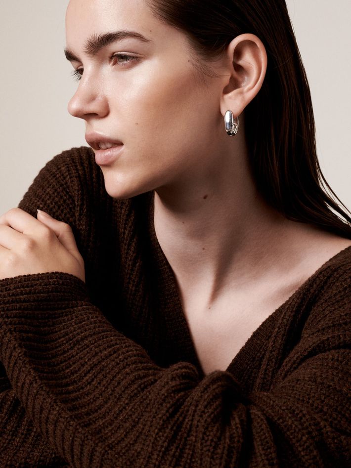 Selected solely from Leigh’s sterling silver collection, this edit highlights her passion of natural forms and textures. Ranging from sculptural earrings to fluid pendants, these are striking designs that resemble works of art.