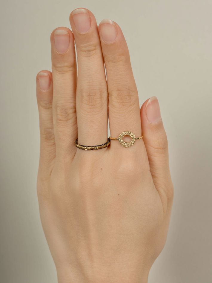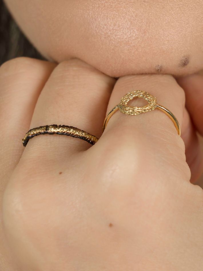 Made of a single, solid precious metal or metal alloy. Highly durable, can always be re-polished to regain its shine after wear.