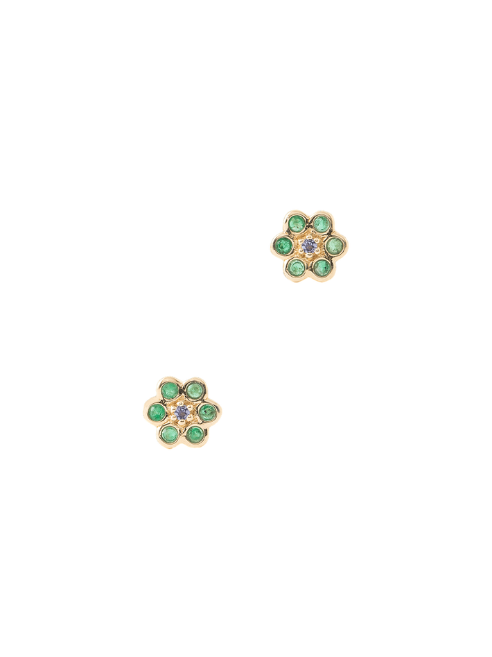 18 kt solid yellow gold12 emeralds & 2 sapphiresPair of earrings
