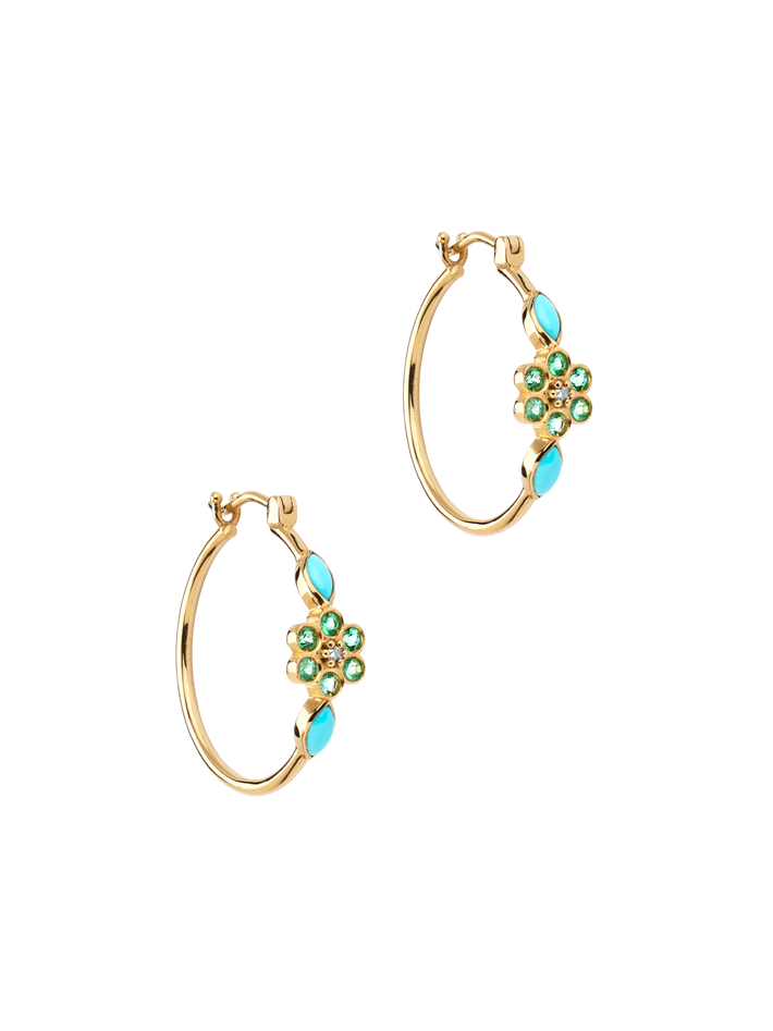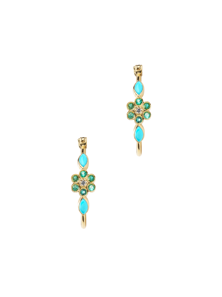 Miniflower hoop earrings 3 turquoise