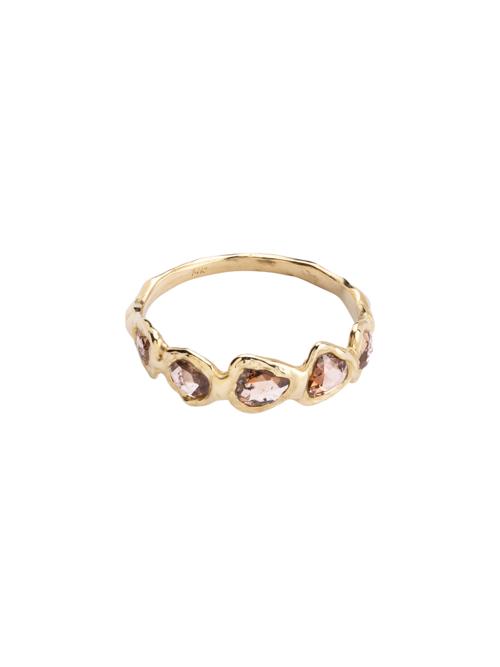 "We love the organic shapes and cuts found throughout Emilie's collection and how she celebrates the imperfections in metals and natural gemstones."