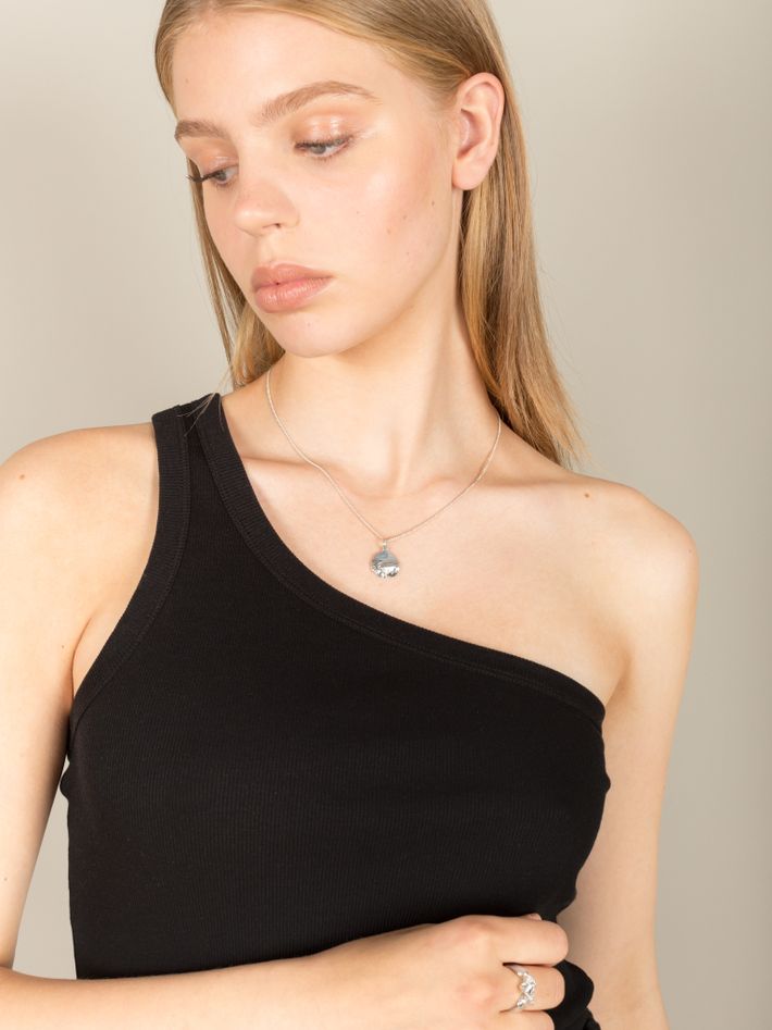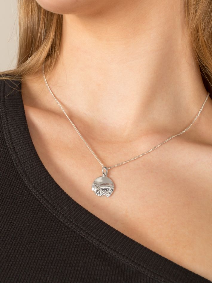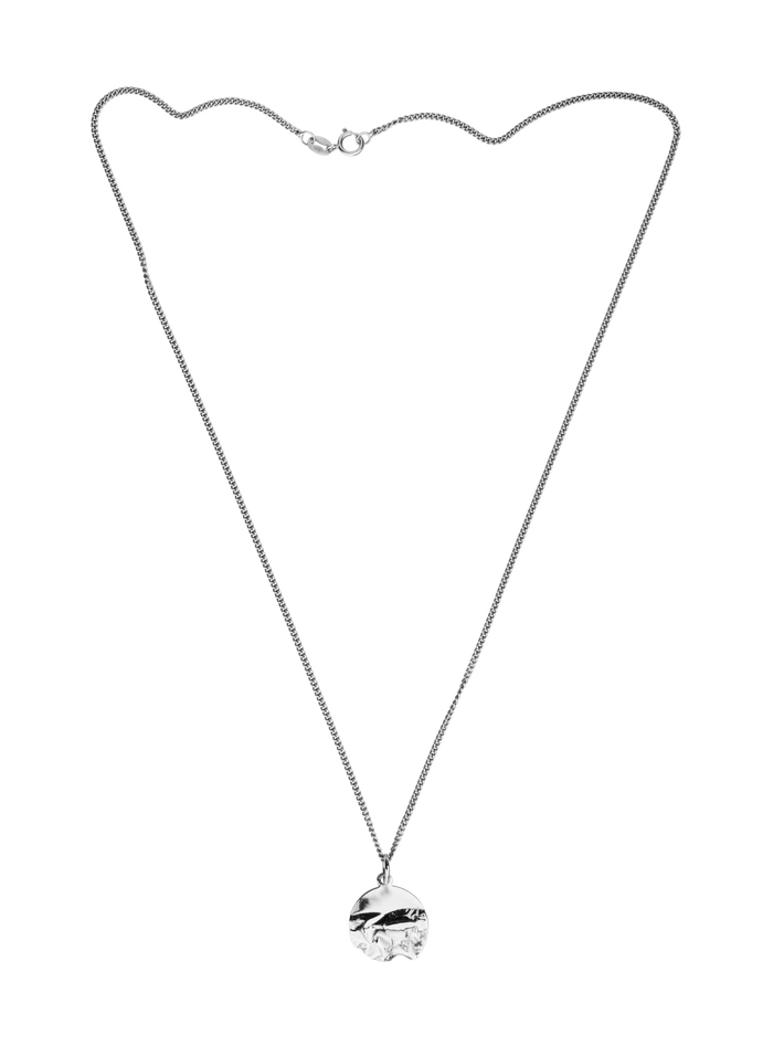 A circle pendant with molten detailing makes this necklace a statement piece.
