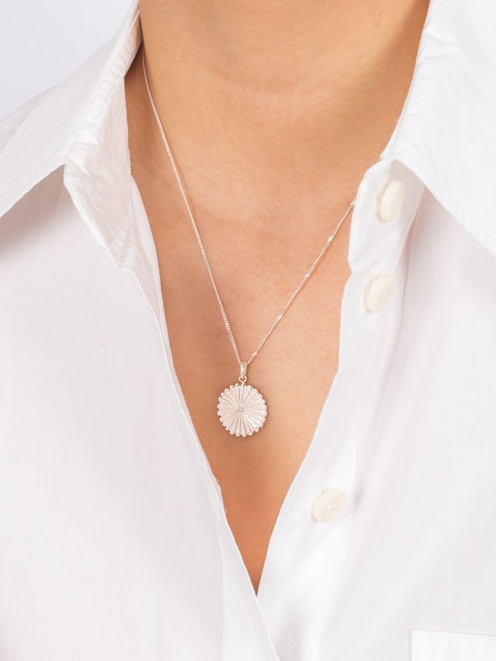 Inspired by the rays of the sun with a diamond at the centre, this beautiful pendant is said to radiate positivity and warmth.