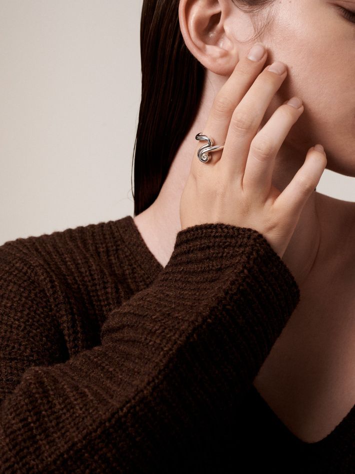Selected solely from Leigh’s sterling silver collection, this edit highlights her passion of natural forms and textures. Ranging from sculptural earrings to fluid pendants, these are striking designs that resemble works of art.