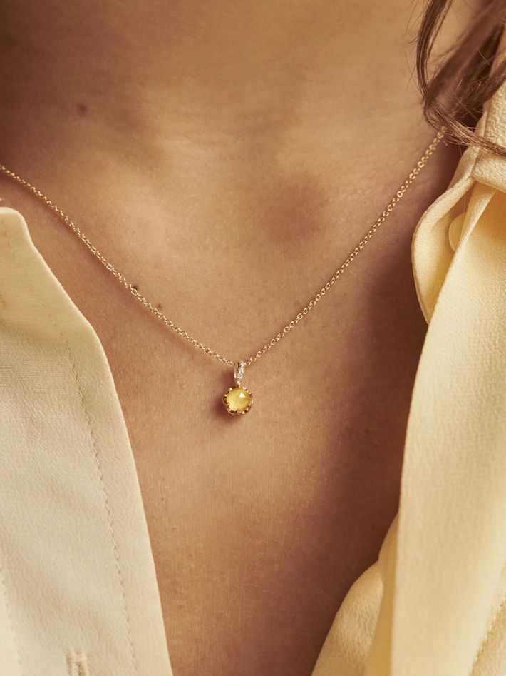 A precious and highly durable metal which comes in different golden hues depending on its purity.