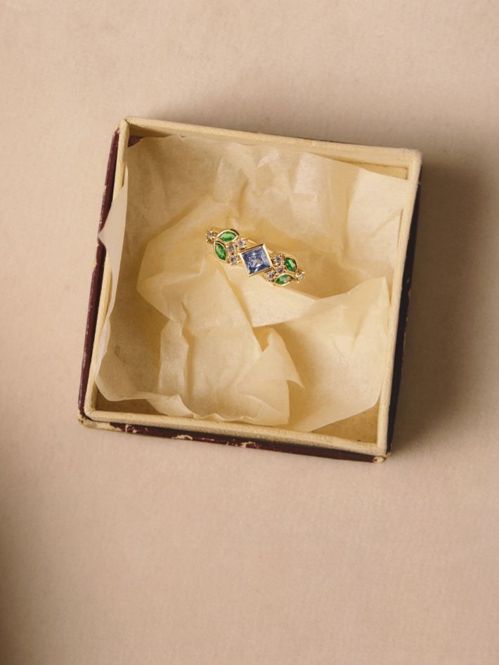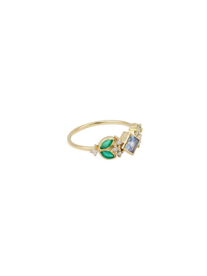 18 kt solid yellow gold0.42 ct in 1 sapphire, emerald & diamond