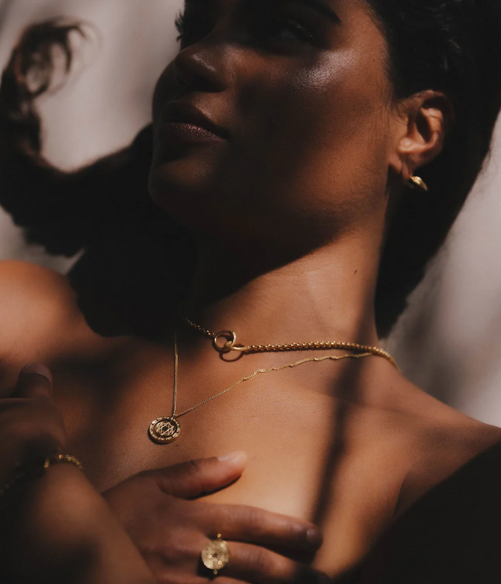 Made of plated 18 karat yellow gold, a thin layer of precious metal layered on the surface of a precious base metal. We recommend using our replating service every 3 or 4 years.