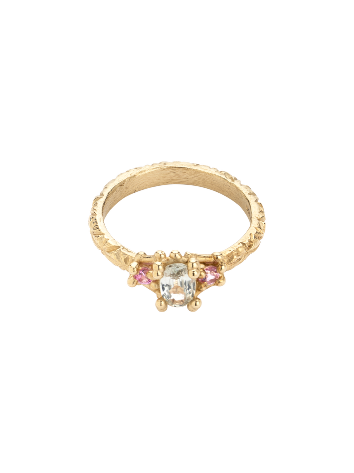 Reclaimed Green & Pink Sapphires. Due to the nature of how we source our stones, the colour may vary slightly. This piece is One of a Kind.