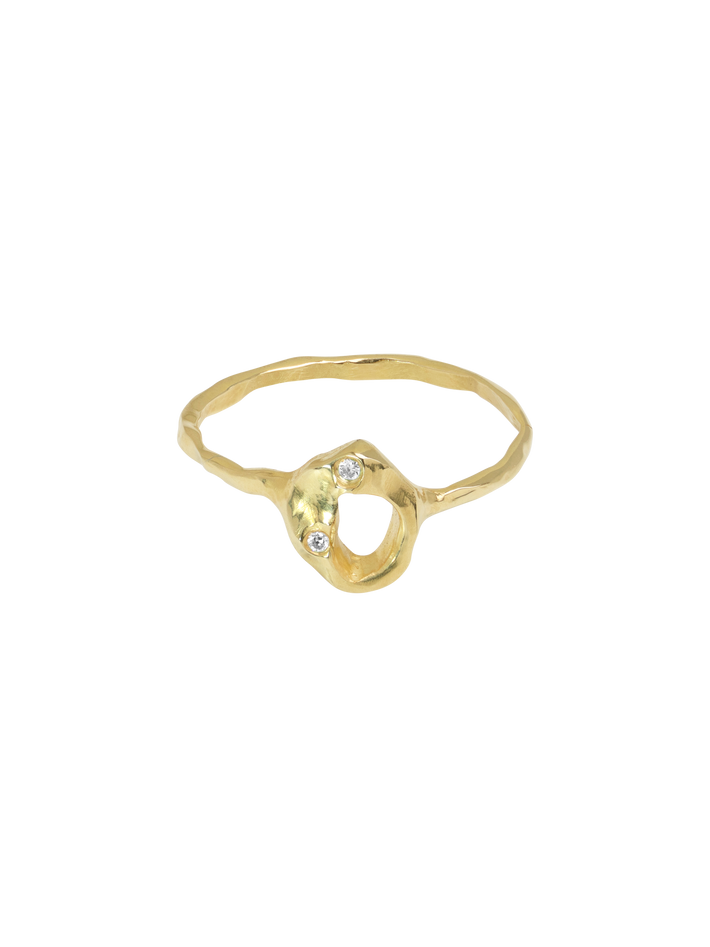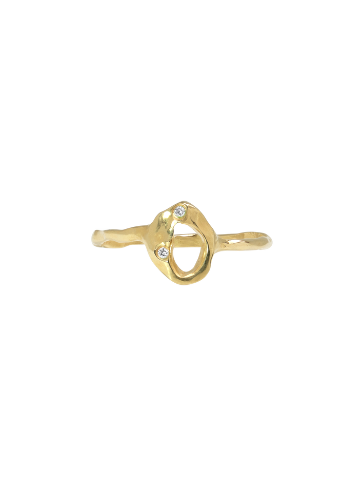 A unique stacking ring from Sara Jin Mi's collection and set with two round top diamonds.