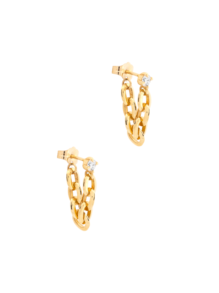 Round diamond knife edge oval link chain huggies