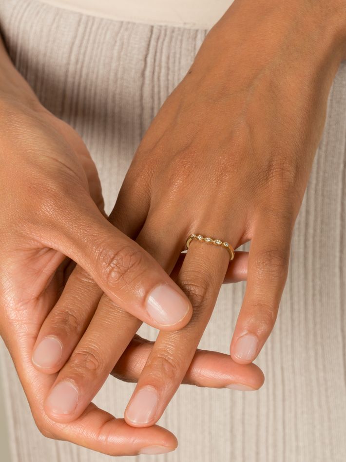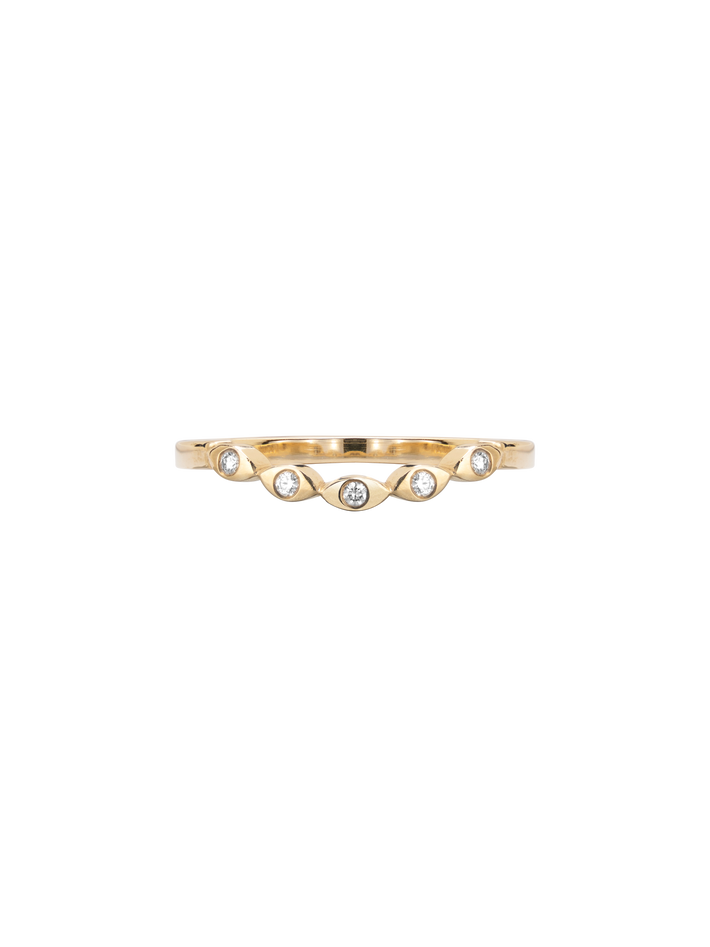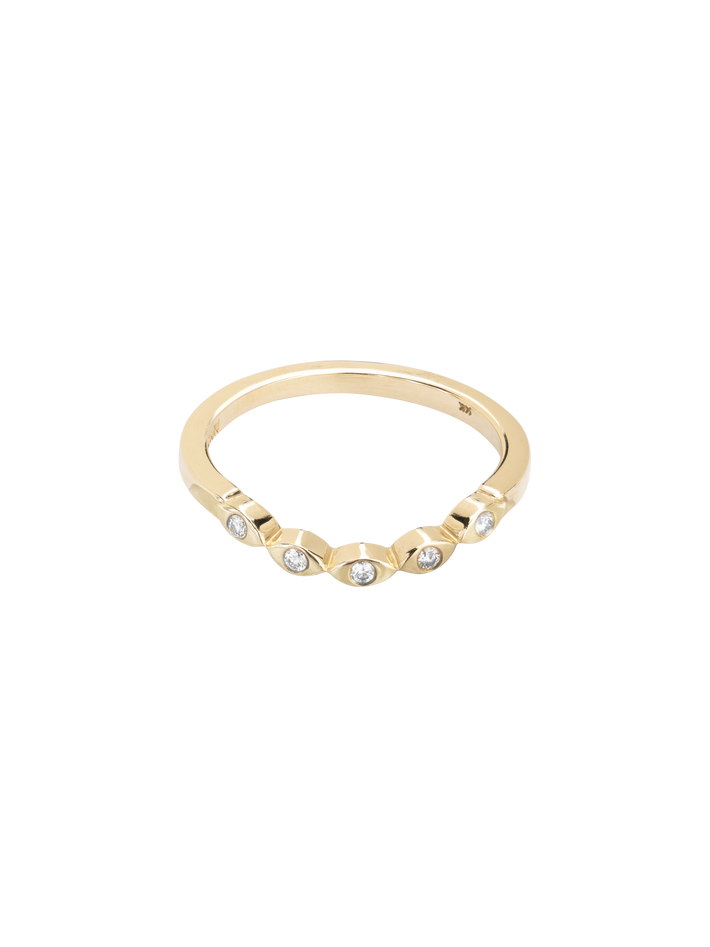 A unique curved ring with gorgeous diamond stones. A great addition to your ring stack!