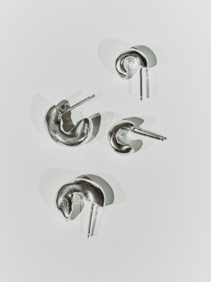 "AGMES make cool, sculptural jewellery with responsible practices. Their hoops and stacking rings look best when worn doubled up, and you should mix your metals too. This jewellery will become a staple."