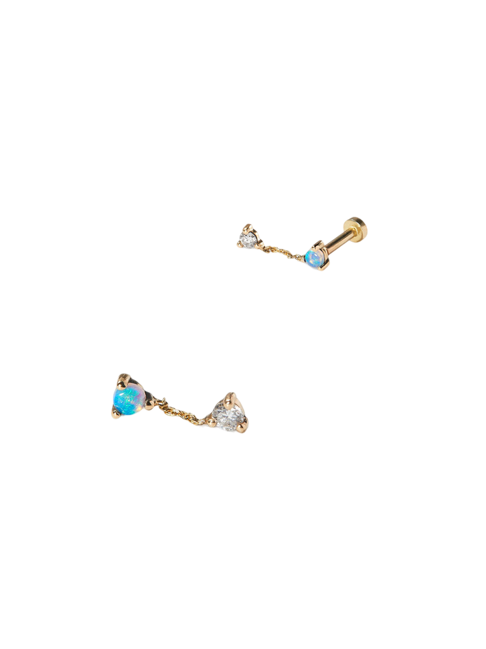 Small two-step chain earrings with opal & diamond