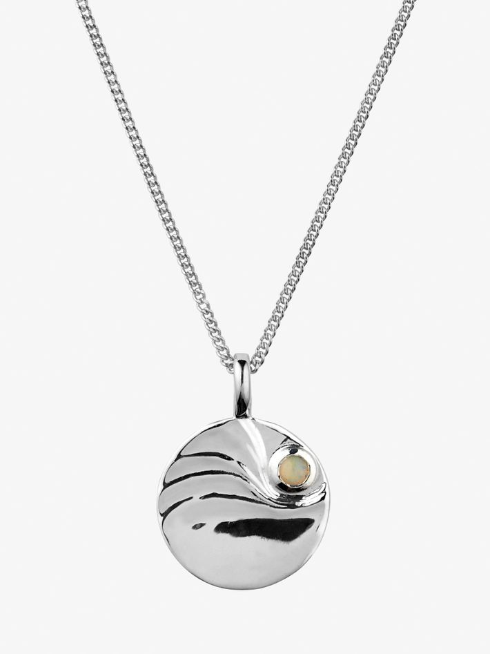 Like a sunrise over the ocean, this sterling silver pendant set with a single opal is perfect for everyday wear.