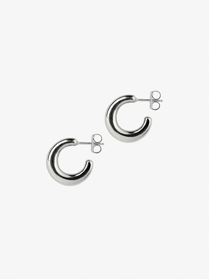 Substantial-looking yet lightweight, this charming pair of 'bubbly' silver hoops is a sculptural variation on an old classic.