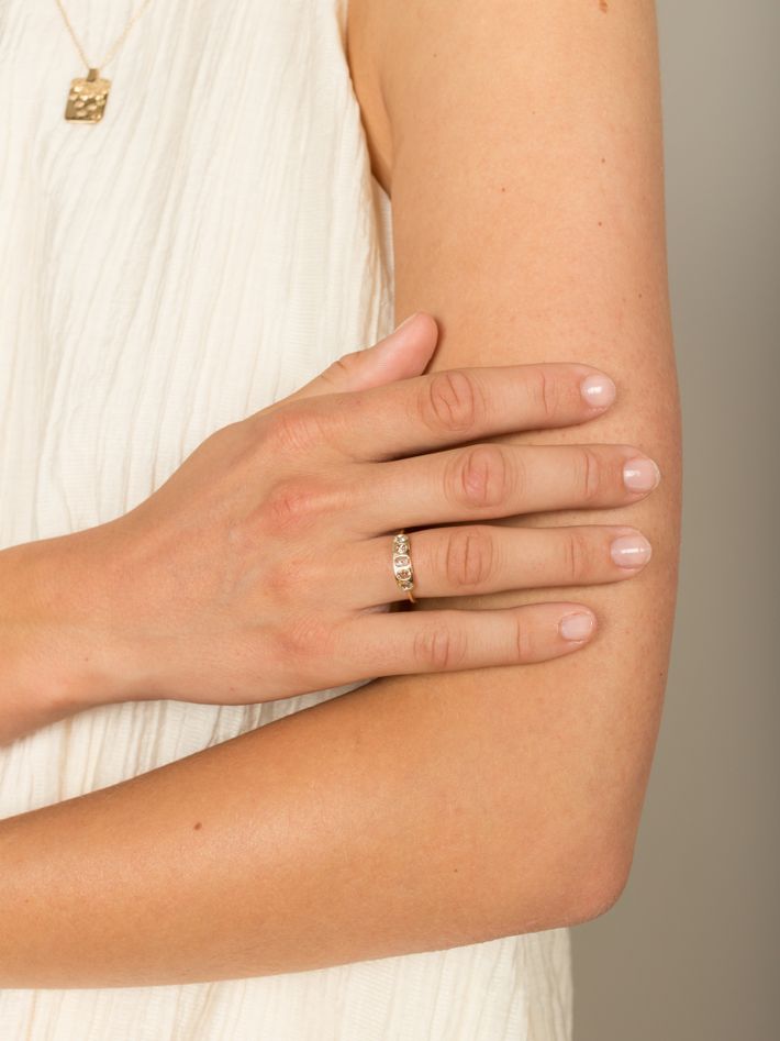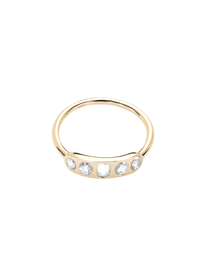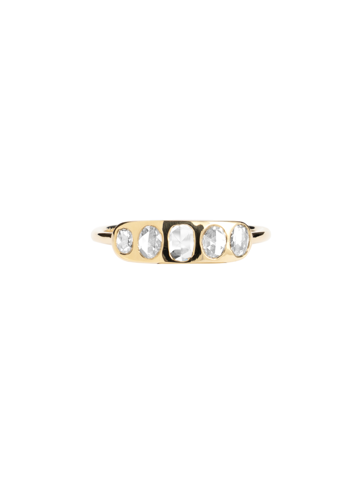 Set with five oval rose cut diamonds, this piece makes a lovely wedding option.