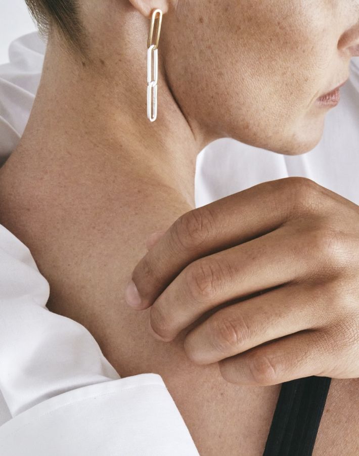Scandinavian design and Japanese inspiration come together to form this beautiful chain earring.
