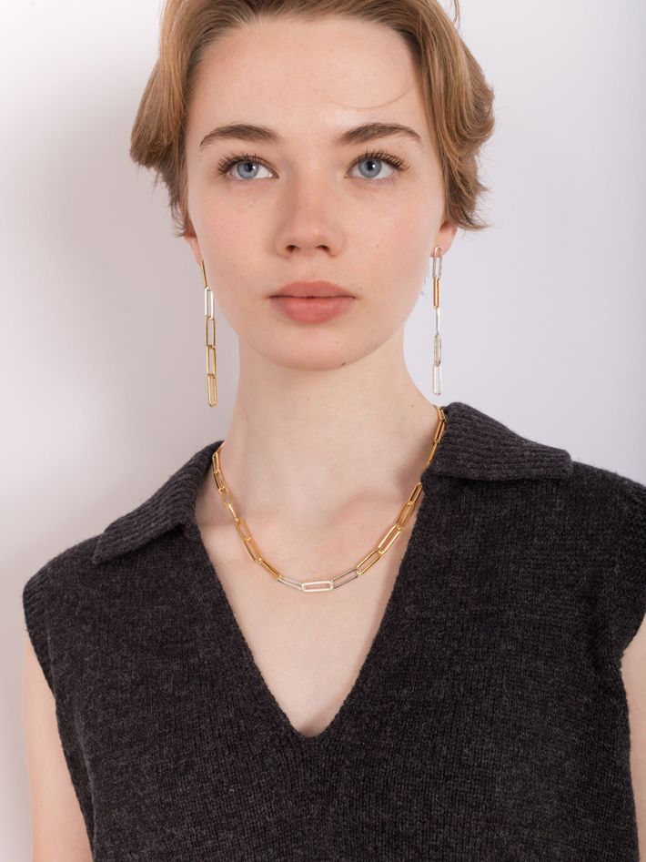 This is the statement earring in Kinraden's Oxygen collection and it looks amazing when the links move.