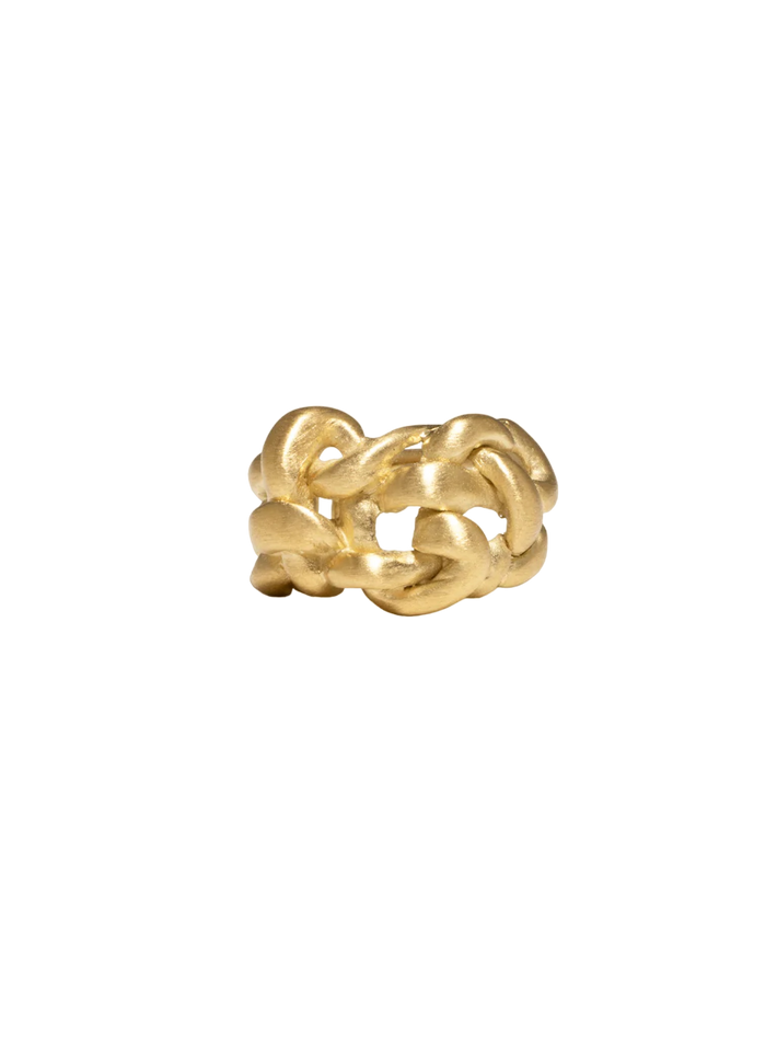 Made of plated 14 karat yellow gold, a thin layer of precious metal layered on the surface of a precious base metal. We recommend using our replating service every 3 or 4 years.