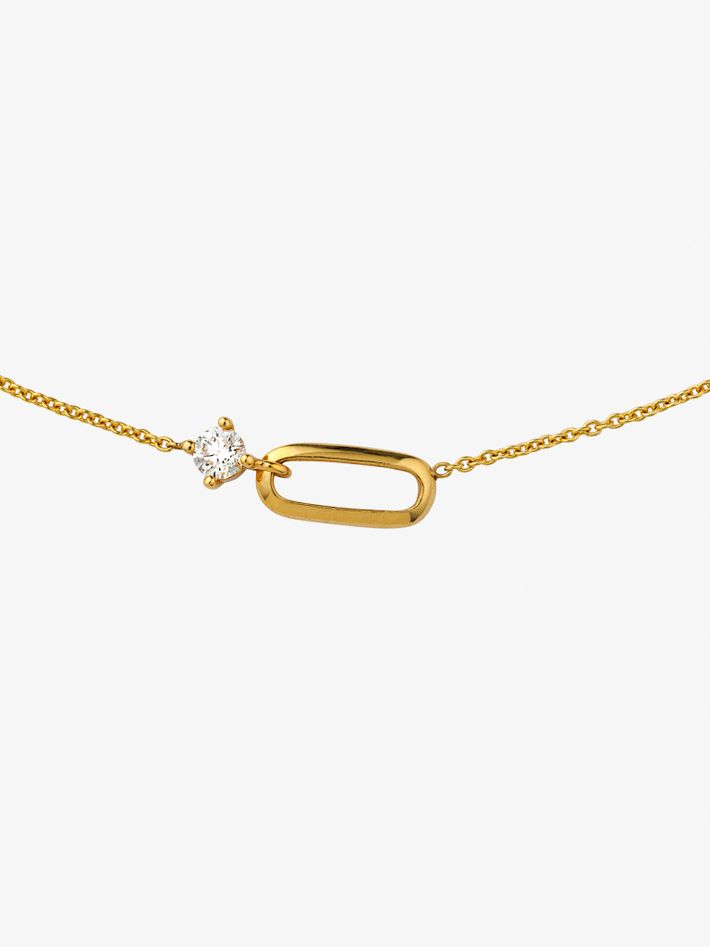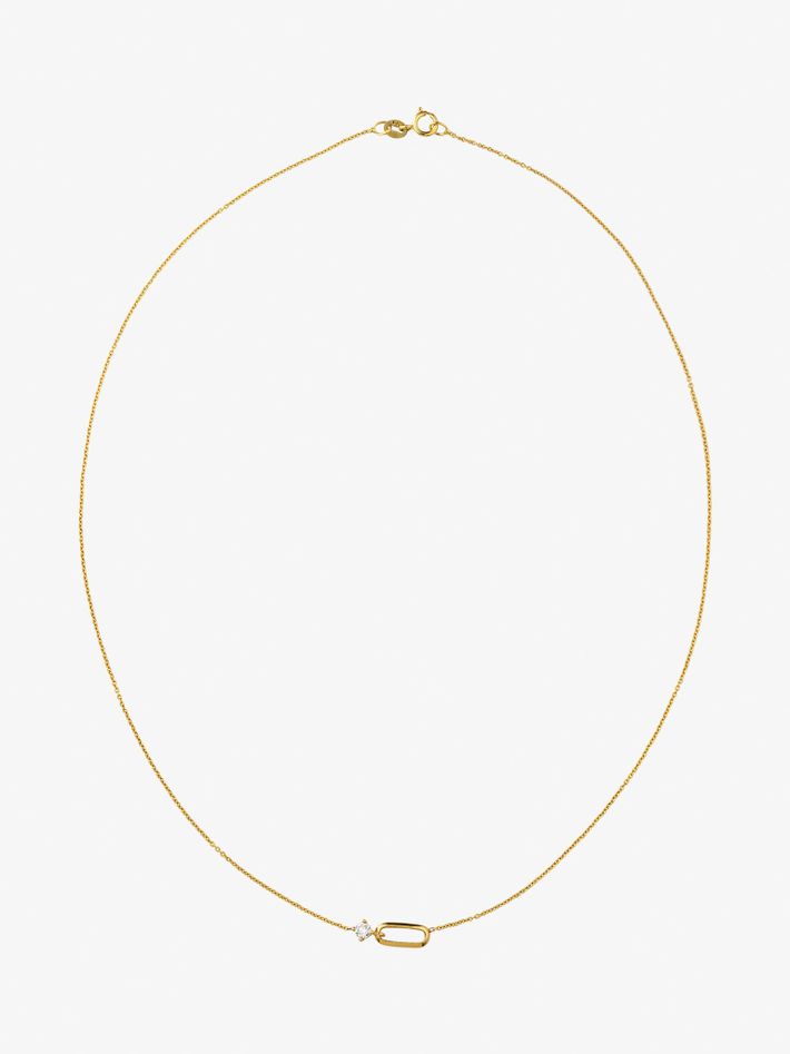 A single oval shaped knife edge link connected to a prong-set diamond, this necklace is the perfect example of a second skin piece.