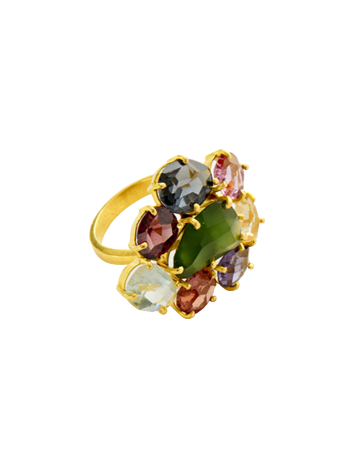 18kt gold pstm myanmar mixed spinel large malar ring
