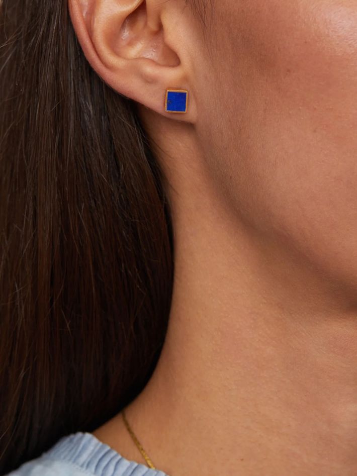 18kt gold vermeil pstm afghanistan lapis square studs