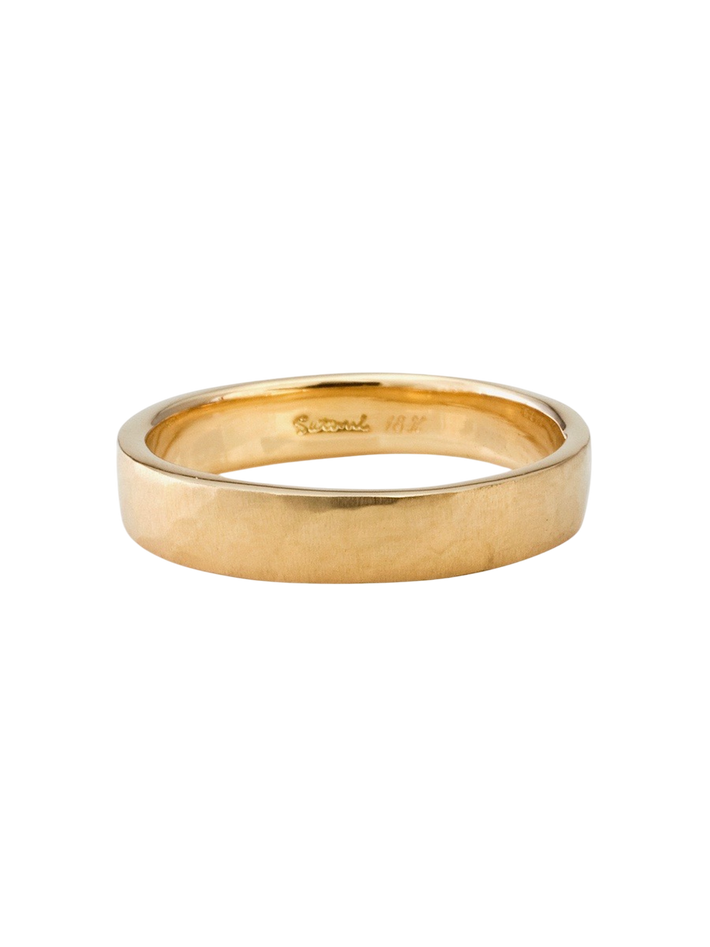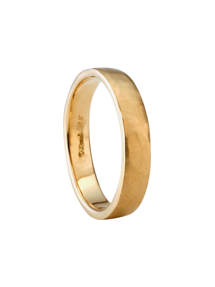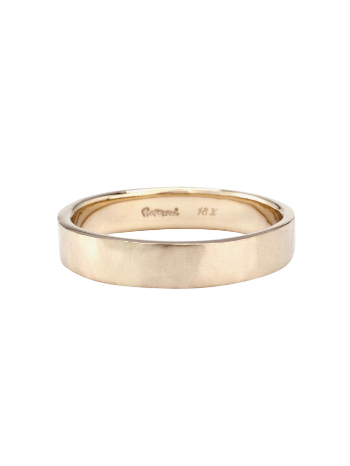 Made of a single, solid precious metal or metal alloy. Highly durable, can always be re-polished to regain its shine after wear.