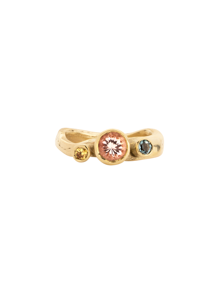 9 kt solid yellow gold1 aquamarine, 1 morganite & 1 sapphire
