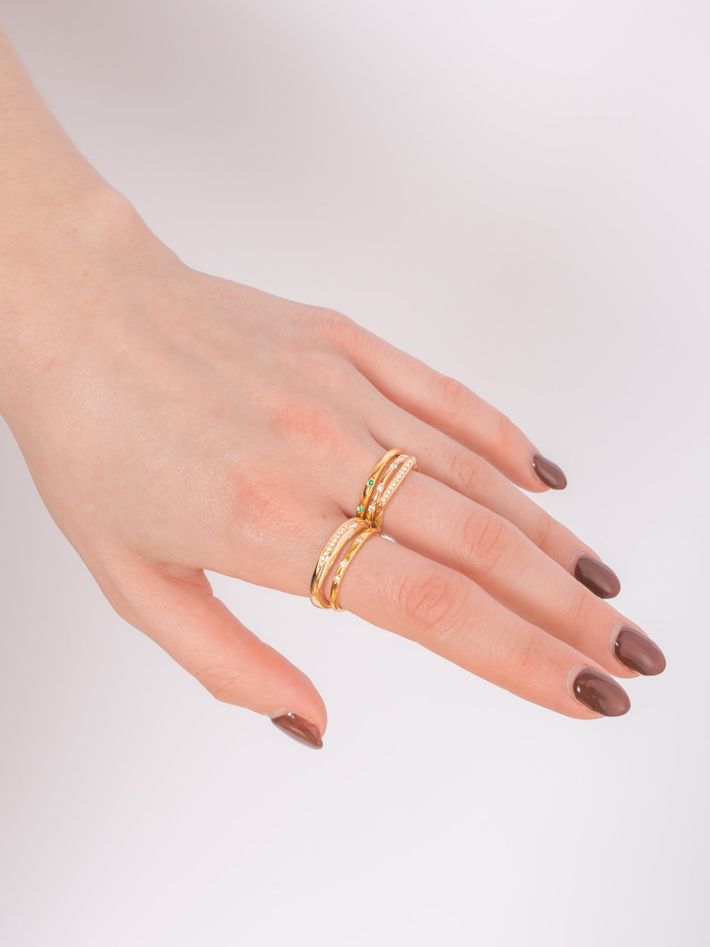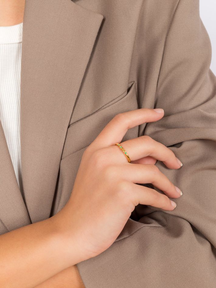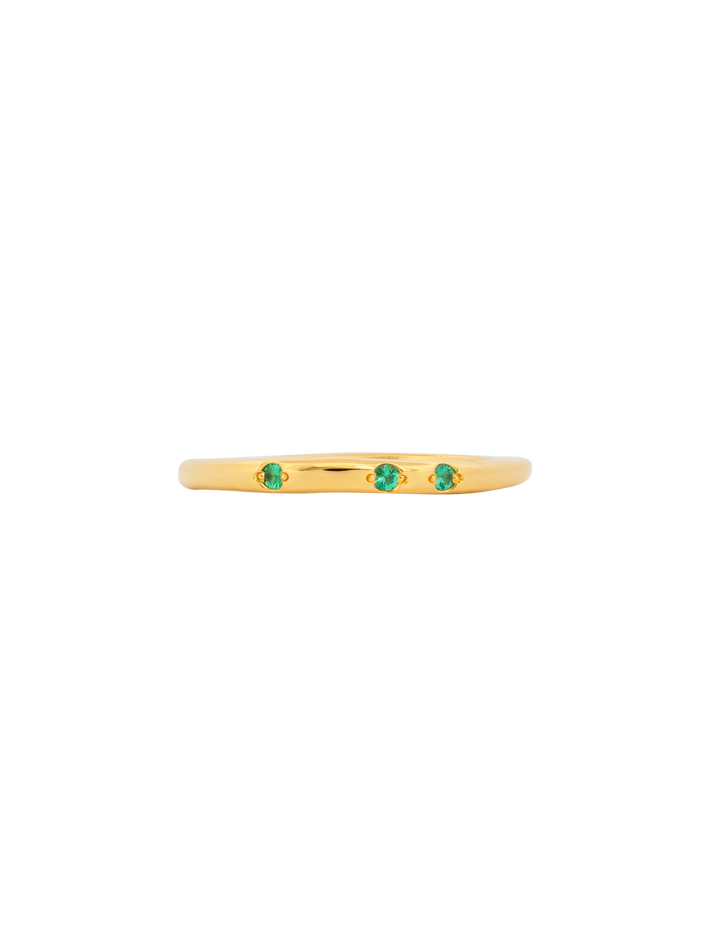 For the emerald lovers, this is an elegant band to wear solo or stack alongside your other ELI-O rings.