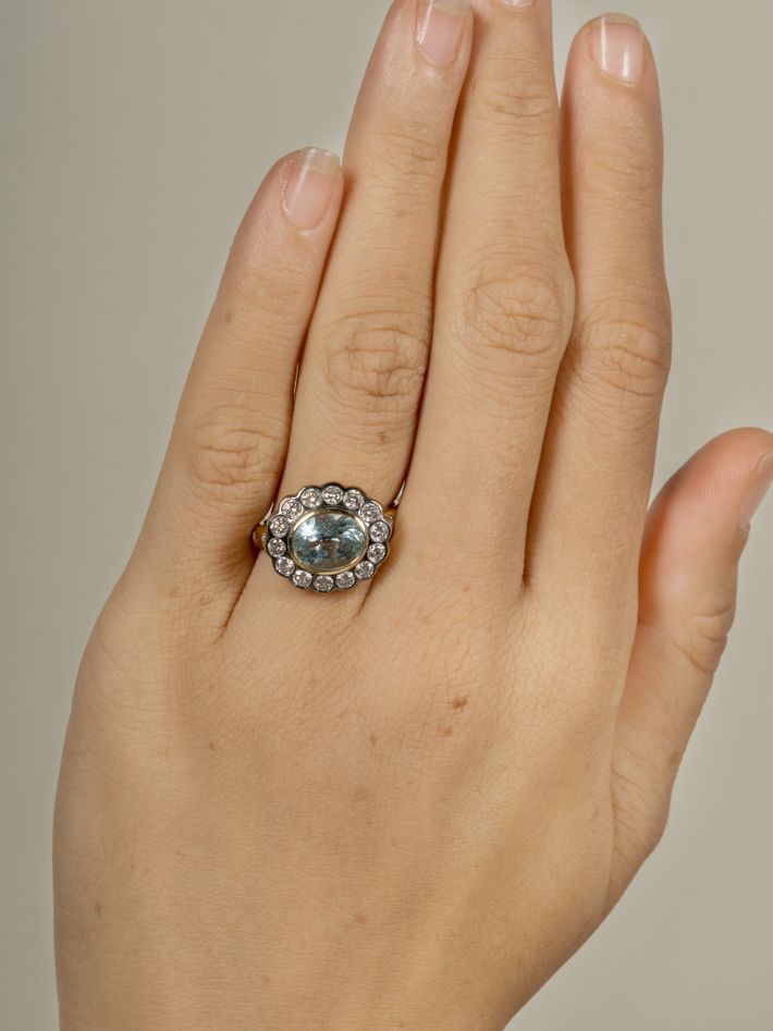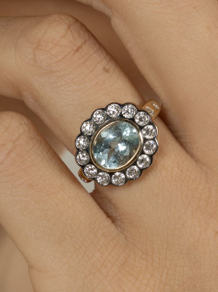 14 kt solid yellow gold1 aquamarine & diamond