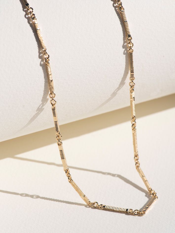 A precious and highly durable metal which comes in different golden hues depending on its purity.