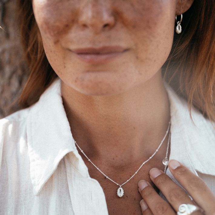 92.5% pure silver, a highly durable precious metal. Sterling silver is nickel-free, hypoallergenic and safe for people with sensitive skin.