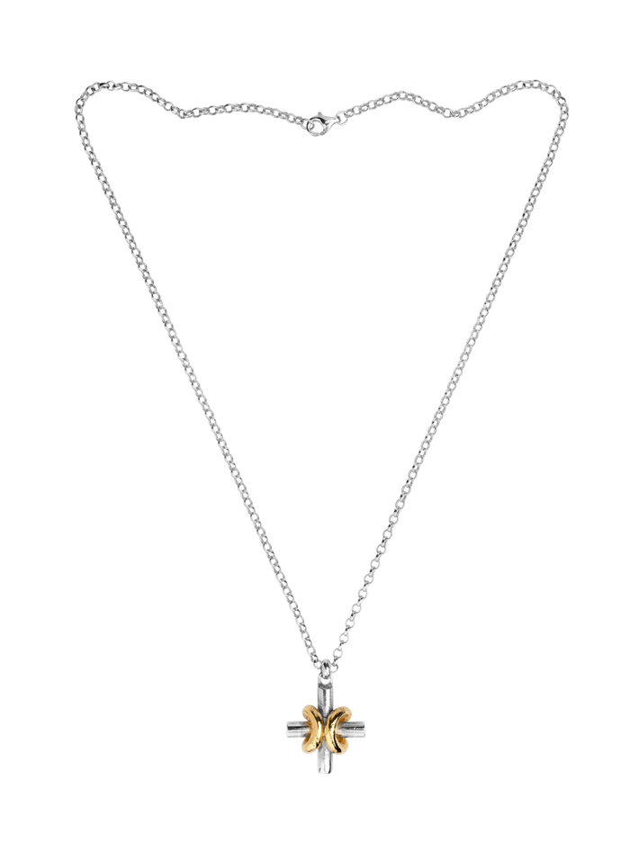 A modern cross style necklace that can be worn everyday, we love the clever knot design.