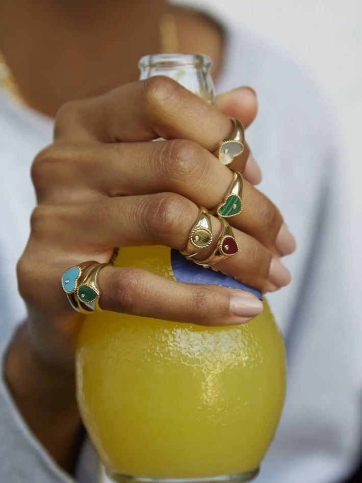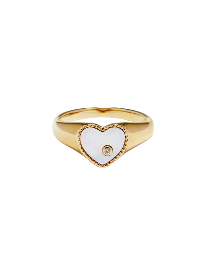 Baby chevalière coeur nacre or jaune ring (Refurbished)